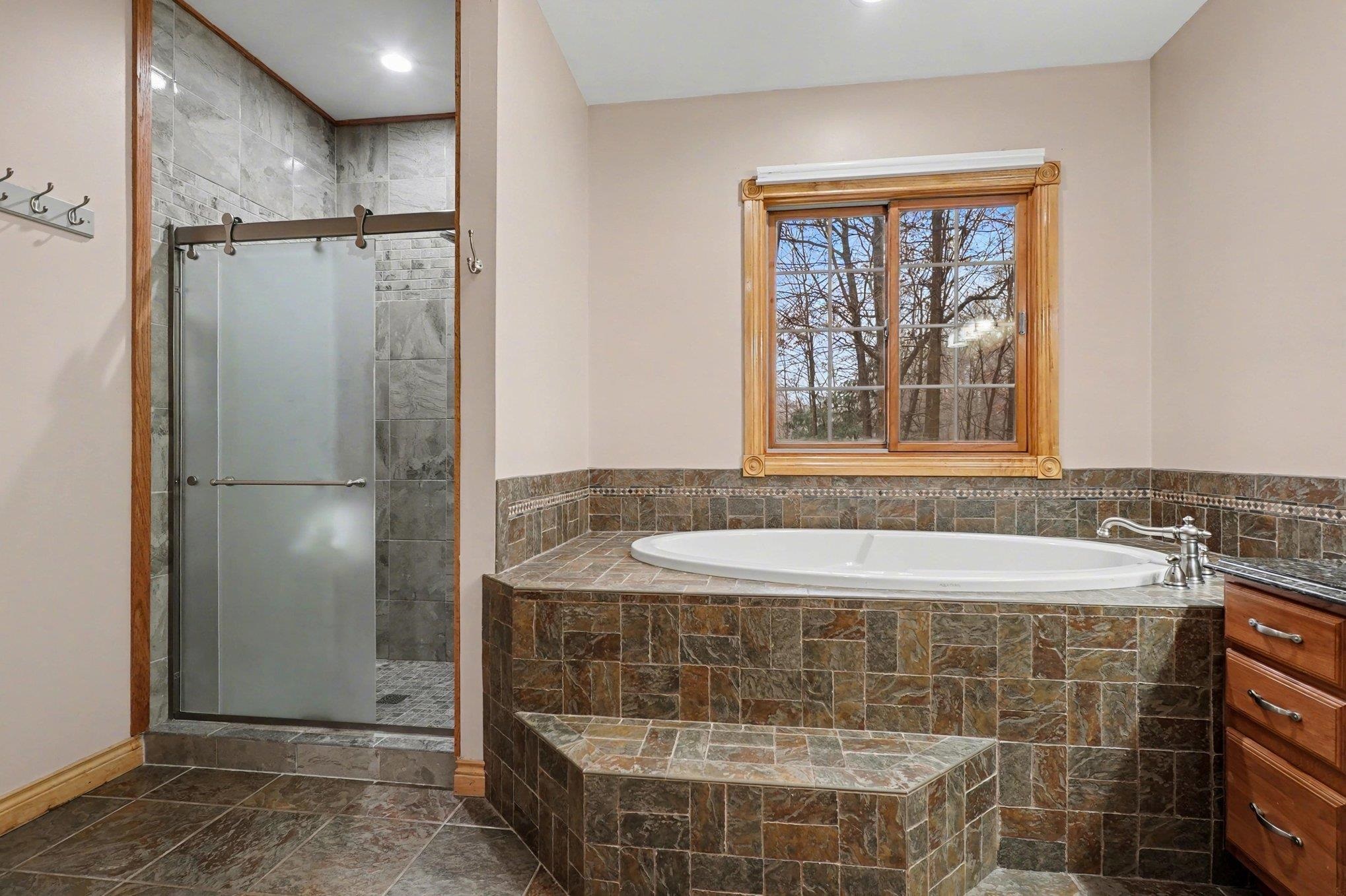 Welcome to Pine River Bluff Estates, where space, comfort, and thoughtful design come together in this stunning traditional home. Offering five spacious bedrooms, three full bathrooms, one half bath, a dedicated library/office, finished basement, attached 2.5-car garage, and an additional detached garage, this home truly checks every box. Step inside to a bright, two-story foyer that immediately sets the tone. Just off the entry, you have a private library/office with front facing views. The spacious living room features cathedral ceilings that fill the room with natural light and a gas fireplace that creates a comfortable and inviting atmosphere. The heart of the home is the expansive custom kitchen. Designed for gathering and everyday living, it features granite countertops and stainless-steel appliances. With an open layout and eat-in dining area, the kitchen sits just off the formal dining room that overlooks the backyard and patio. The main-level primary suite is a true retreat, featuring a jetted soaking tub, custom walk-in tile shower, and ample storage with two walk-in closets. Convenience meets function with a generously sized first-floor laundry room and a separate half bath located just off the garage entry and mudroom area. Upstairs, you'll find three well-proportioned bedrooms with great closet space and a full bathroom. The finished lower level expands your living space even further, offering a large recreation area with a wet bar, oversized daylight/egress windows, an additional bedroom with an attached full bathroom, and plenty of storage in the utility room. Situated on .94 of an acre in Homer Township, this home offers the space you need and the layout you want. Schedule your private showing today.